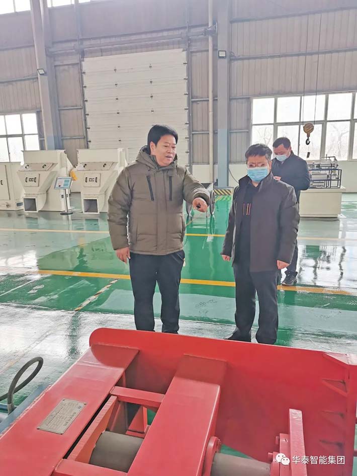 李立军一行先后来到华泰智能装备集团子公司华泰机械、安久医疗、华泰环境生产车间与产品展示车间。各个生产车间内机器有序运转,工人各司其职,一派热火朝天的繁忙景象。